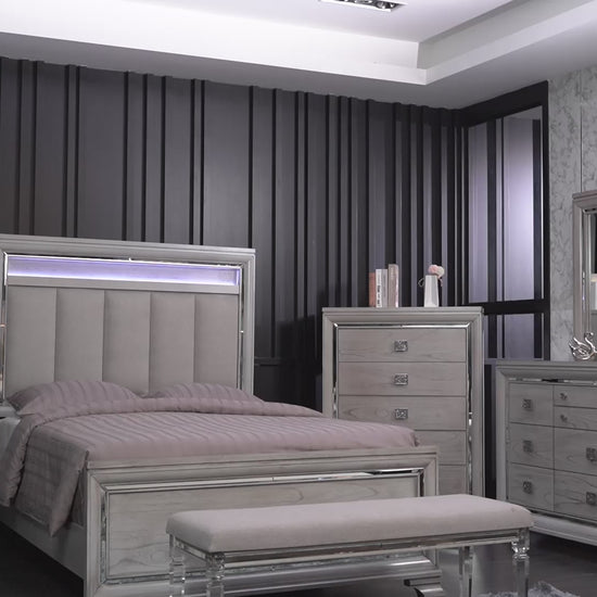 5 pc: Bed Frame, Dresser, Mirror, 1 Nightstand & Chest